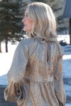 Women's LS Satin Jaquard Blouse Tie Back Detail Khaki